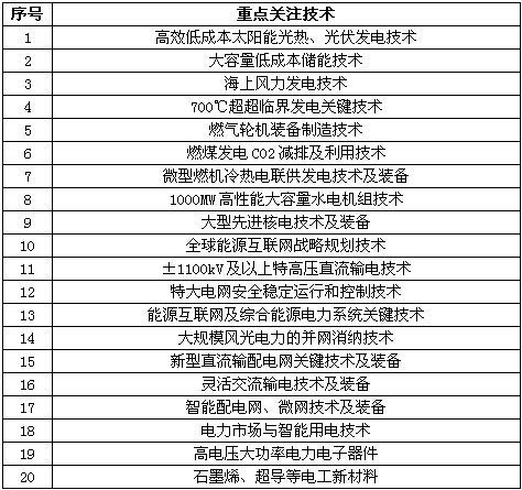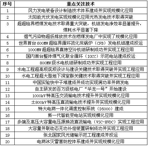 《我国“十三五”电力科技二十项重点关注技术》包括:
